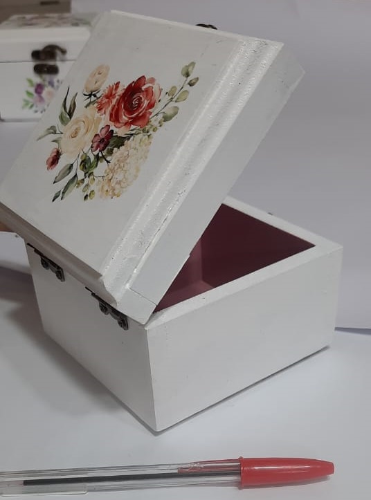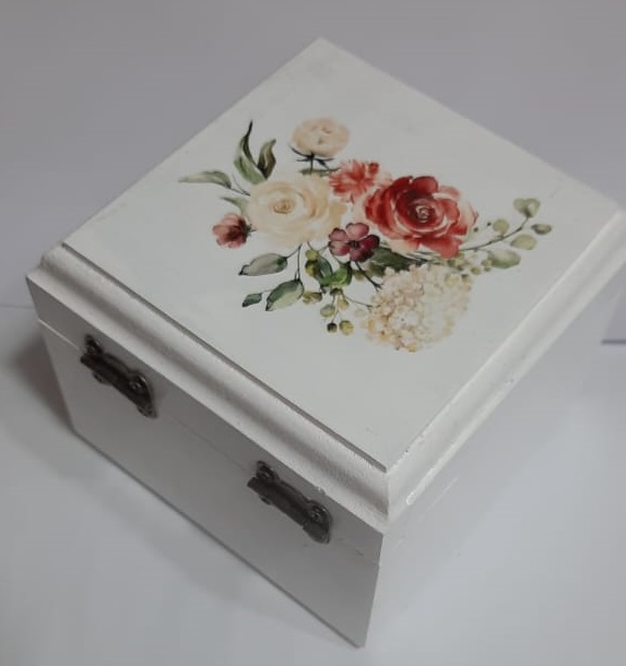 جعبه-تزئینی-سفید با گل قرمز